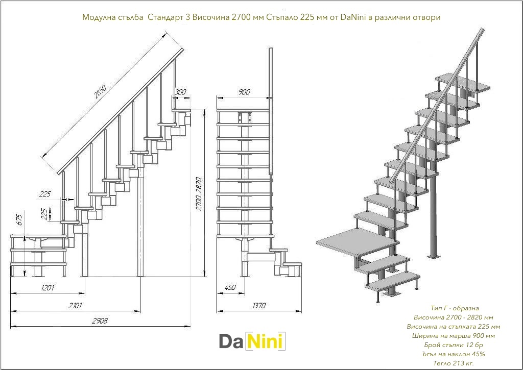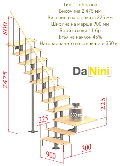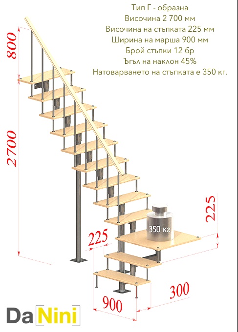 • Отличителна черта е оригиналният дизайн. “ДаНини” има прави стълби с квадратен профил (за модели Компакт).