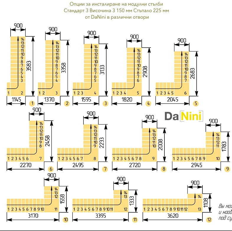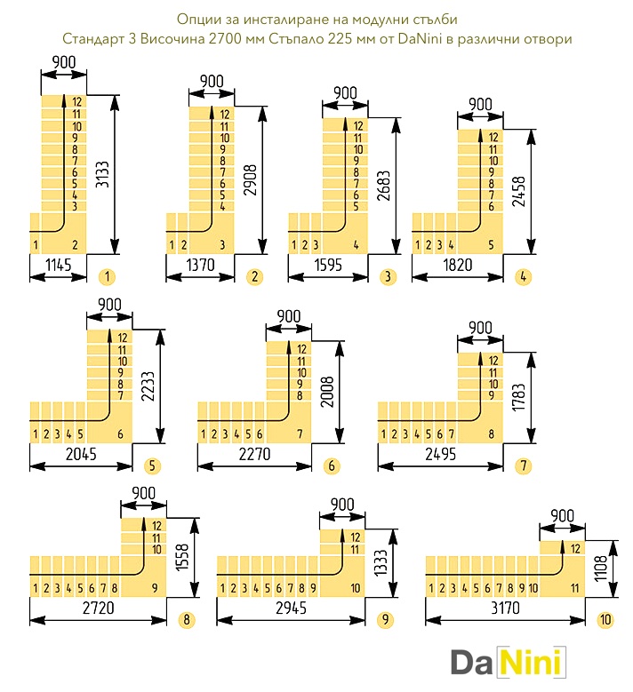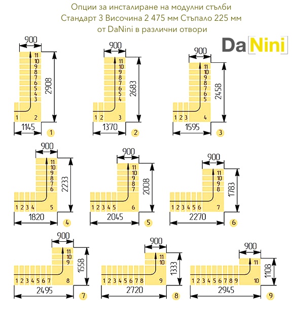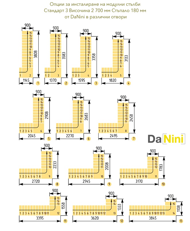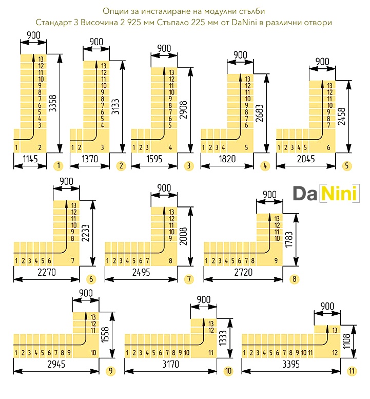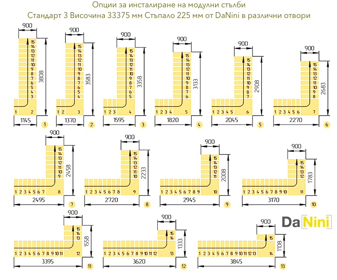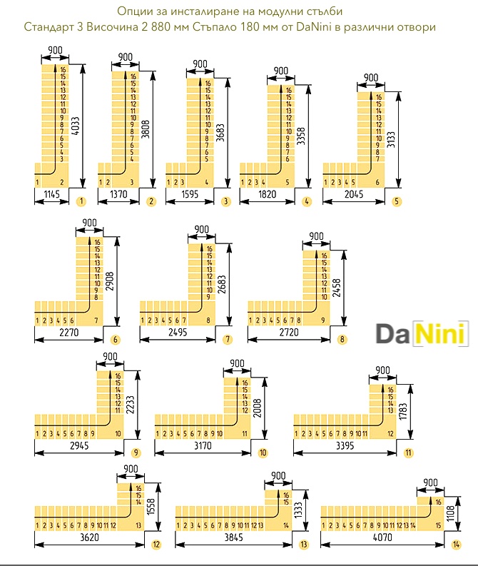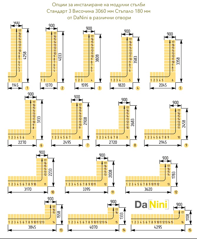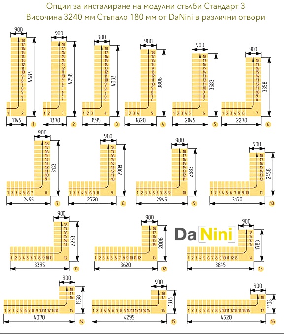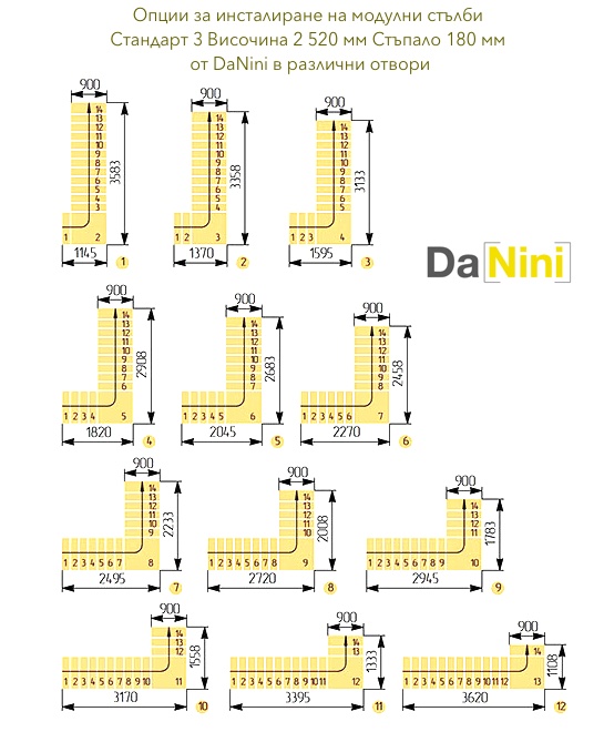 • Препоръчваме Ви да посетите раздела за модулни стълби и да закупите стълба на болци, съобразно размерите на стълбищния отвор и размерите на Вашето помещение.